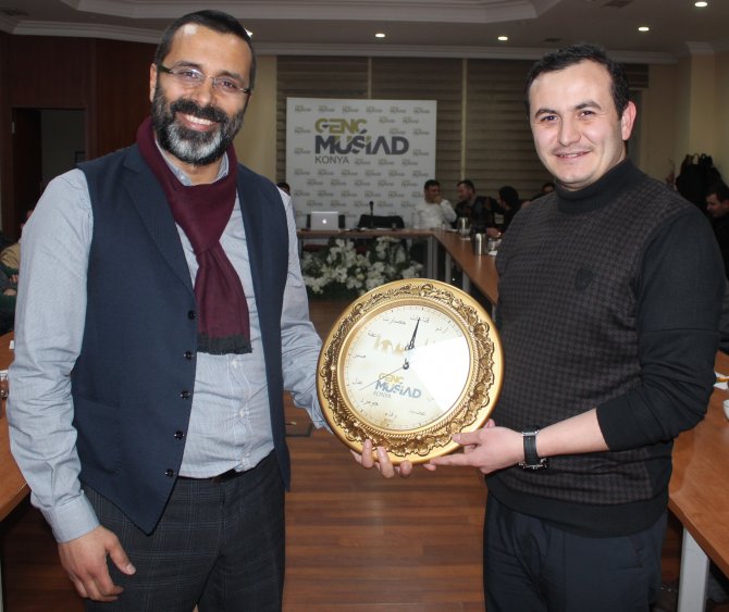 Programın sonunda Genç MÜSİAD Konya Şube Başkanı Emre Babayiğit, İş Yönetimi ve İletişim Uzmanı Özden Cengizoğlu’na günün anısına hediye takdim etti.
