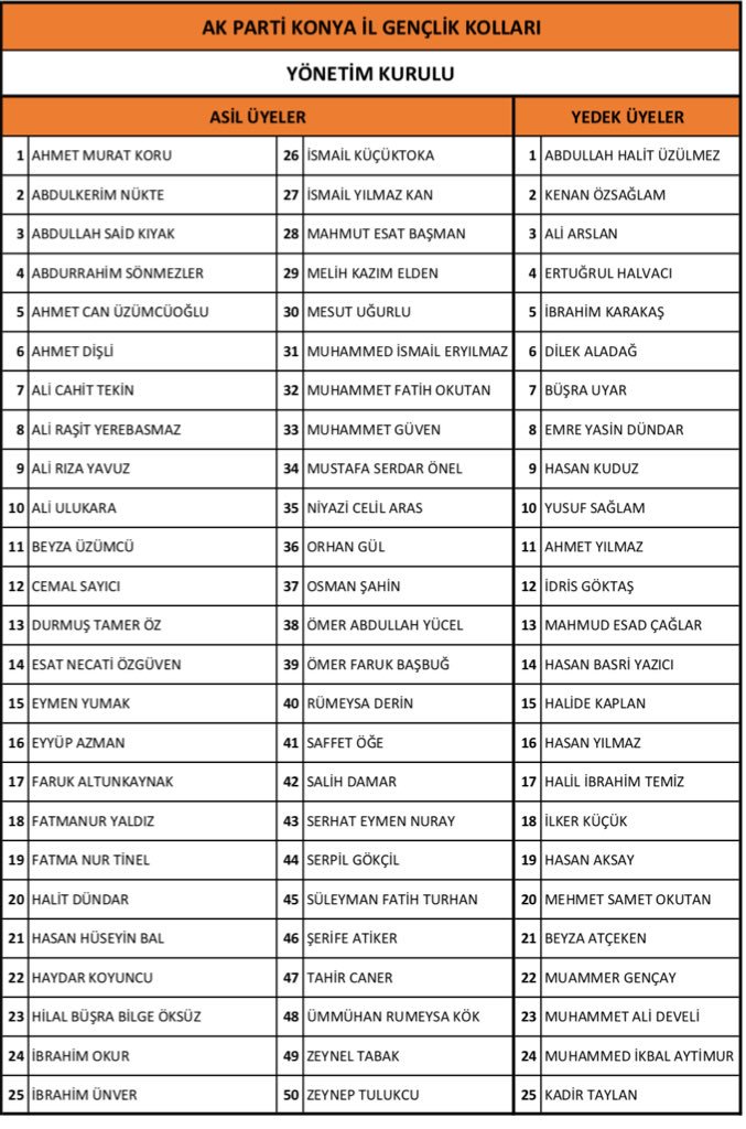 İşte Ak Parti Konya İl Gençlik Kolları'nın yeni yönetim kurulu;