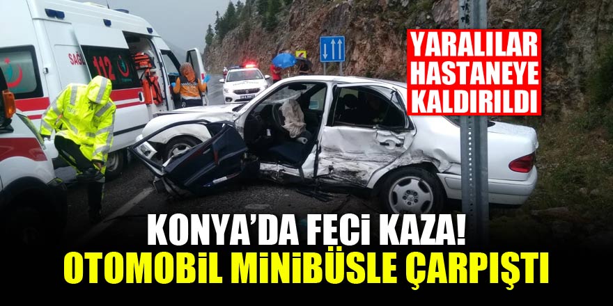 Konya'da feci kaza! Minibüs otomobille çarpıştı