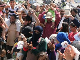 İdomeni'de sığınmacılardan Esed rejimi protestosu