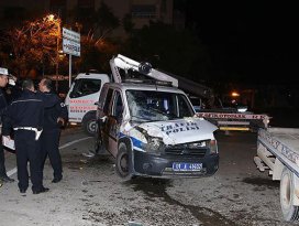 Kaza yerine gelen polislerin aracına otomobil çarptı