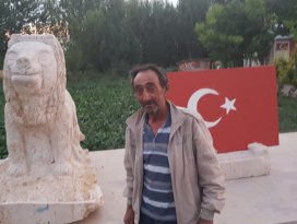 Şehit komşusunun anısına bayrak ve aslan figürü yaptı