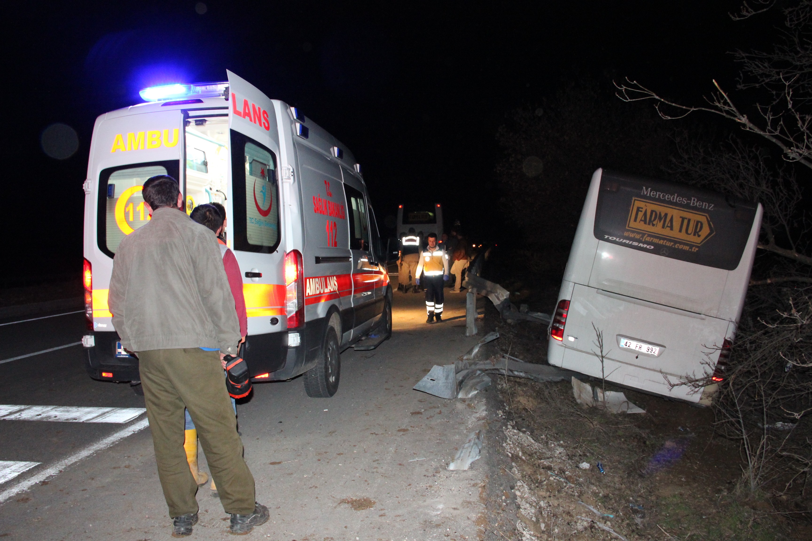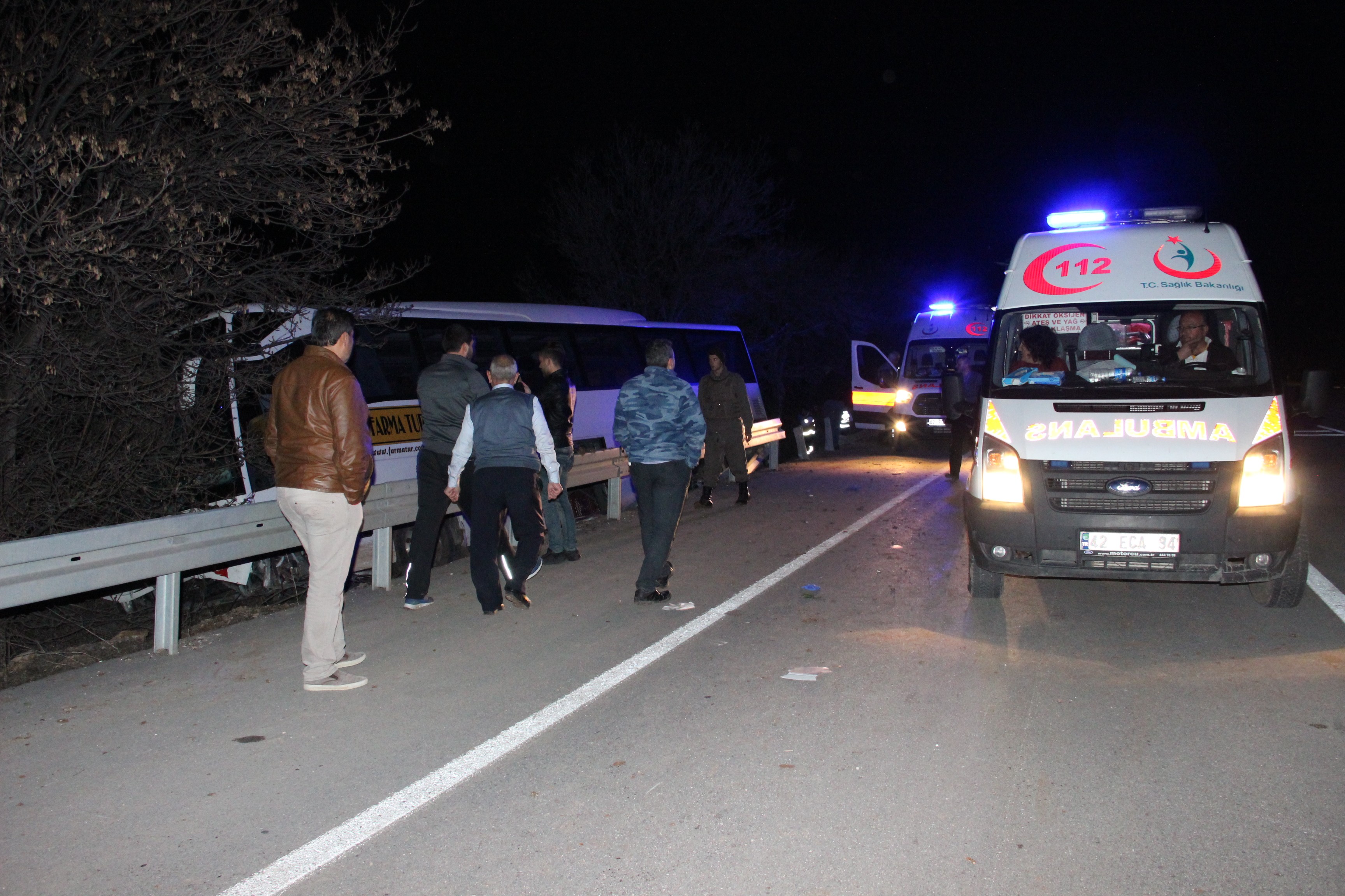 Kaza, Konya’nın Güneysınır ilçesi yakınlarında meydana geldi. Edinilen bilgiye göre, bir tur şirketine ait olduğu öğrenilen ve Mersin’in Taşucu ilçesinden Konya’ya giden Mustafa S. İdaresindeki 42 FR 992 tur otobüsü Karaman-Konya karayolunun 40. kilometresinde seyir halindeyken önüne köpek çıkması sonucu kontrolden çıktı. Şoförün köpeğe çarpmamak için sağa manevra yapması sonucu yol kenarında bulunan bariyere çarpan tur otobüsü ardından da ağaçlara çarparak çamura saplandı. Kaza sonrası olay yerine Karaman ve Konya’dan çok sayıda ambulans jandarma ekipleri sevk edildi. Olay yerine gelen sağlık ekiplerinin ilk müdahalesini yaptıkları 15 yaralı, Konya’daki çeşitli hastanelere kaldırılarak tedavi altına alındı. Diğer yolcular ise kaza yerine getirilen başka bir otobüsle Konya’ya gönderildi.