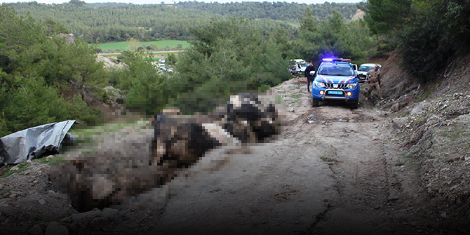 Jandarma ile bölgeye yönlendirilen İl Tarım ve Orman Müdürlüğü ekipleri, yol kenarında 14'ü telef olmuş 15 büyükbaş hayvan buldu.