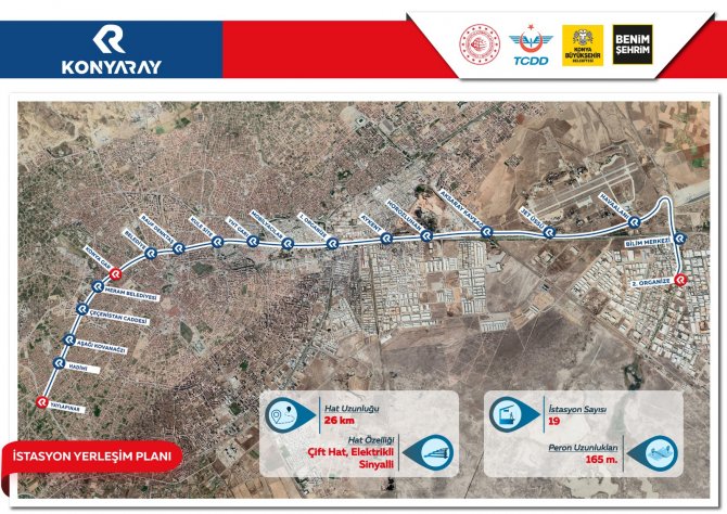 Konya için tarihi bir gün yaşandığını belirten Başkan Altay, birinci etabı Konya Garı ve havaalanı arasında 17.4 kilometre olan hattın ikinci etapta 26 kilometreye ulaşacağını söyledi. Başkan Altay, Konya’nın metro, banliyö, Barış Caddesi Tramvayı ve Adliye-Şehir Hastanesi tramvayı ile dört yıllık süreçte 65 kilometre yeni raylı sistem hattına kavuşacağını vurguladı. TCDD Genel Müdürü Ali İhsan Uygun, “Büyükşehir Belediyesi ile işbirliğini yürüttüğümüz KONYARAY yerel yönetimlerle gerçekleştireceğimiz en önemli ulaşım projelerinden biridir. Projede karayoluyla 1 saat süren yolculuk 30 dakikaya düşecektir. Günlük 90 bin yolcuya hizmet verilecek” dedi.