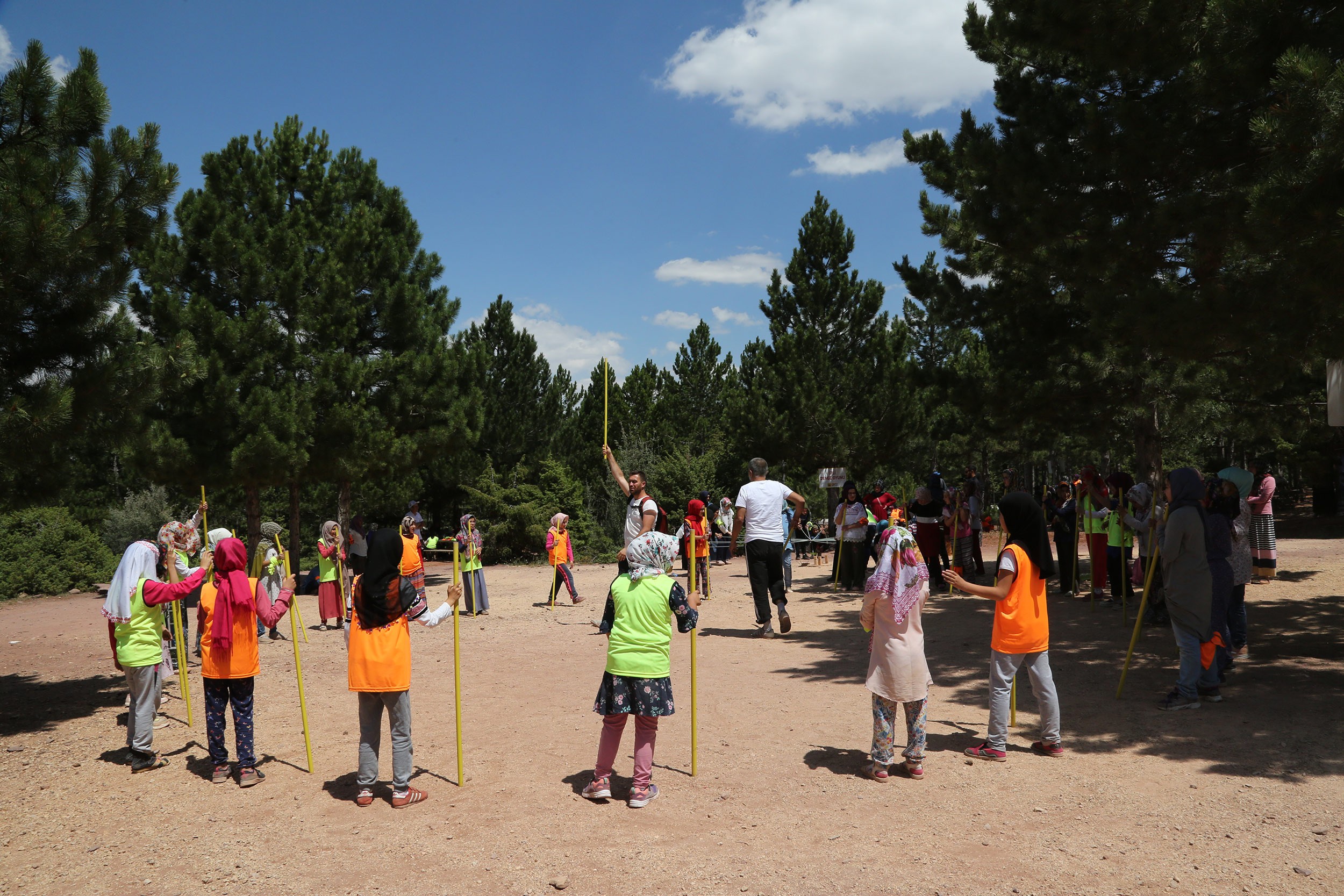 Konya Büyükşehir Belediyesi ile İl Müftülüğü işbirliğiyle şehir merkezindeki Yaz Kur’an kurslarına giden öğrenciler, Büyükşehir Belediyesinin Kent Ormanı Genç KOMEK Yaz Kampı ile Dutlukır Kamp Alanına kurulan oyun parkurlarında çeşitli oyunlarla yazın keyfini çıkarıyor.
