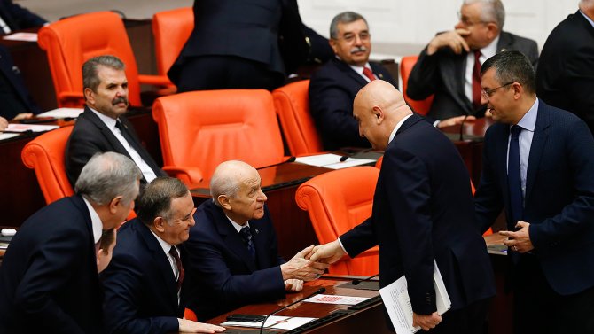 Tezkere üzerinde MHP Grubu adına konuşan MHP Grup Başkanvekili Erkan Akçay ise emperyalist emellerini, bölgedeki istikrarsızlığı destekleyerek, Hafter gibi yasadışı aktörleri finanse ederek gerçekleştirmeye çalışan odakların yanında değil karşısında durmanın "milli duruşun kayıtsız şartsız gereği" olduğunu belirtti.