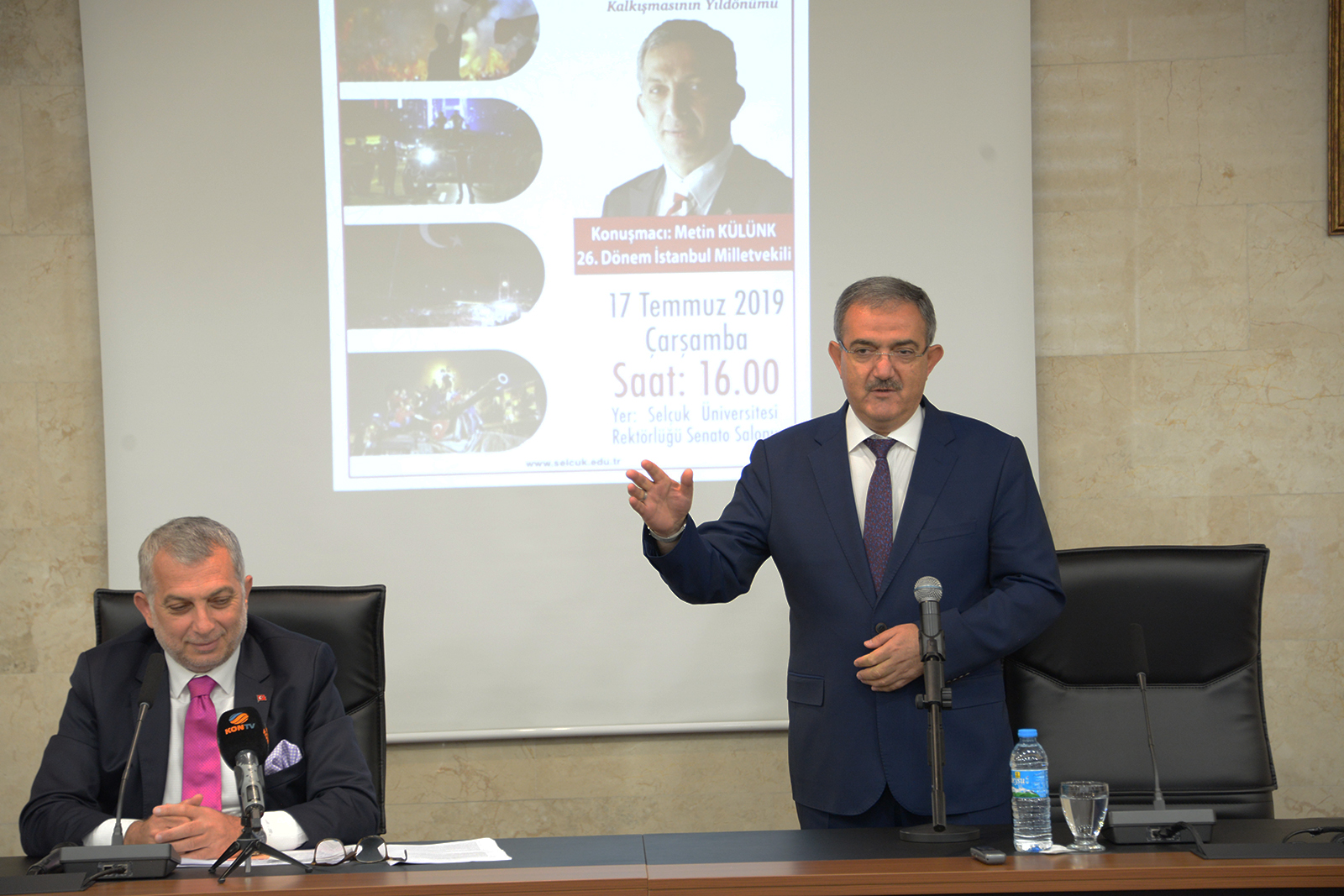 Selçuk Üniversitesi (SÜ) tarafından düzenlenen “15 Temmuz Destanı, İhanetin Yıl Dönümü” konferansı 26. Dönem İstanbul Milletvekili Metin Külünk’ün katılımıyla gerçekleştirildi.