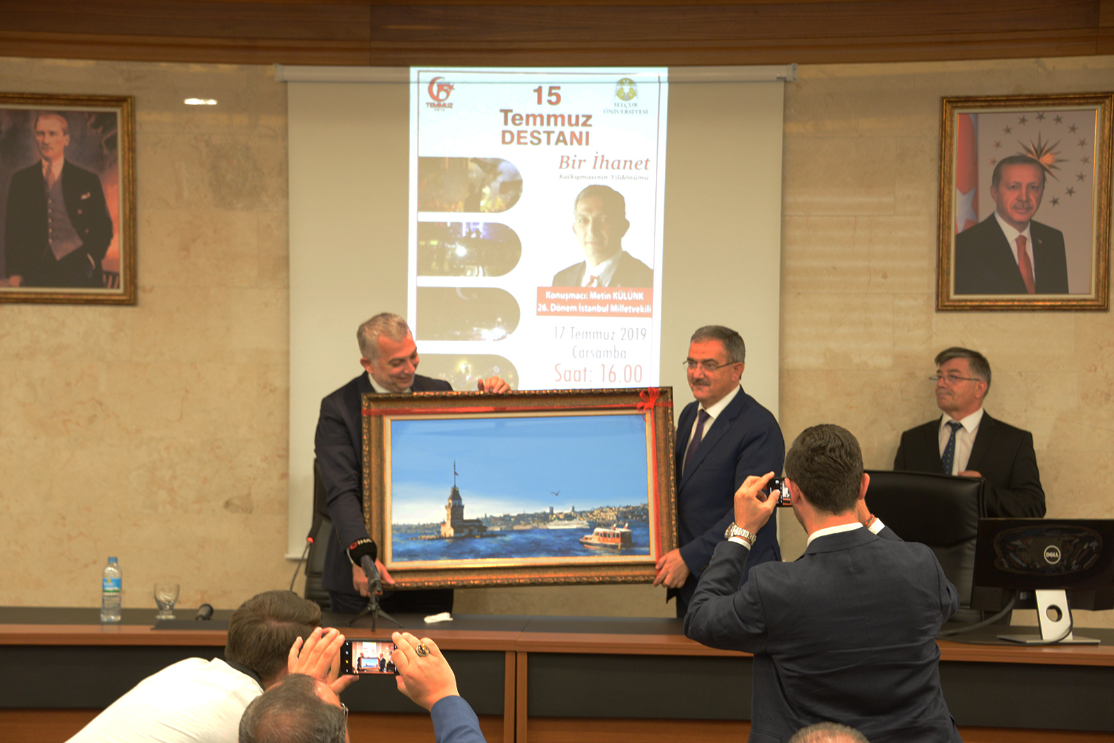 Konferansın ardından Selçuk Üniversitesi Rektörü Prof. Dr. Mustafa Şahin tarafından 26. Dönem İstanbul Milletvekili Metin Külünk’e bir tablo hediye edildi. Selçuk Üniversitesi senato salonunda gerçekleşen konferansa Selçuk Üniversitesi Rektörü Prof. Dr. Mustafa Şahin, Rektör Yardımcıları Prof. Dr. Ahmet Kağan Karabulut, Prof. Dr. Mehmet Okka, Prof. Dr. Özdemir Koçak, Genel Sekreter İbrahim Halıcı, Rektör Danışmanı Prof. Dr. Tahir Balevi, senato üyeleri, dekanlar, okul müdürleri, öğretim üyeleri katıldı.